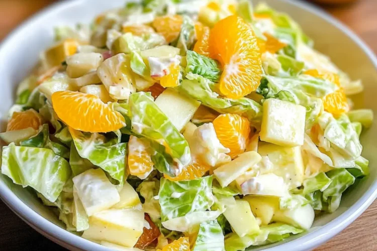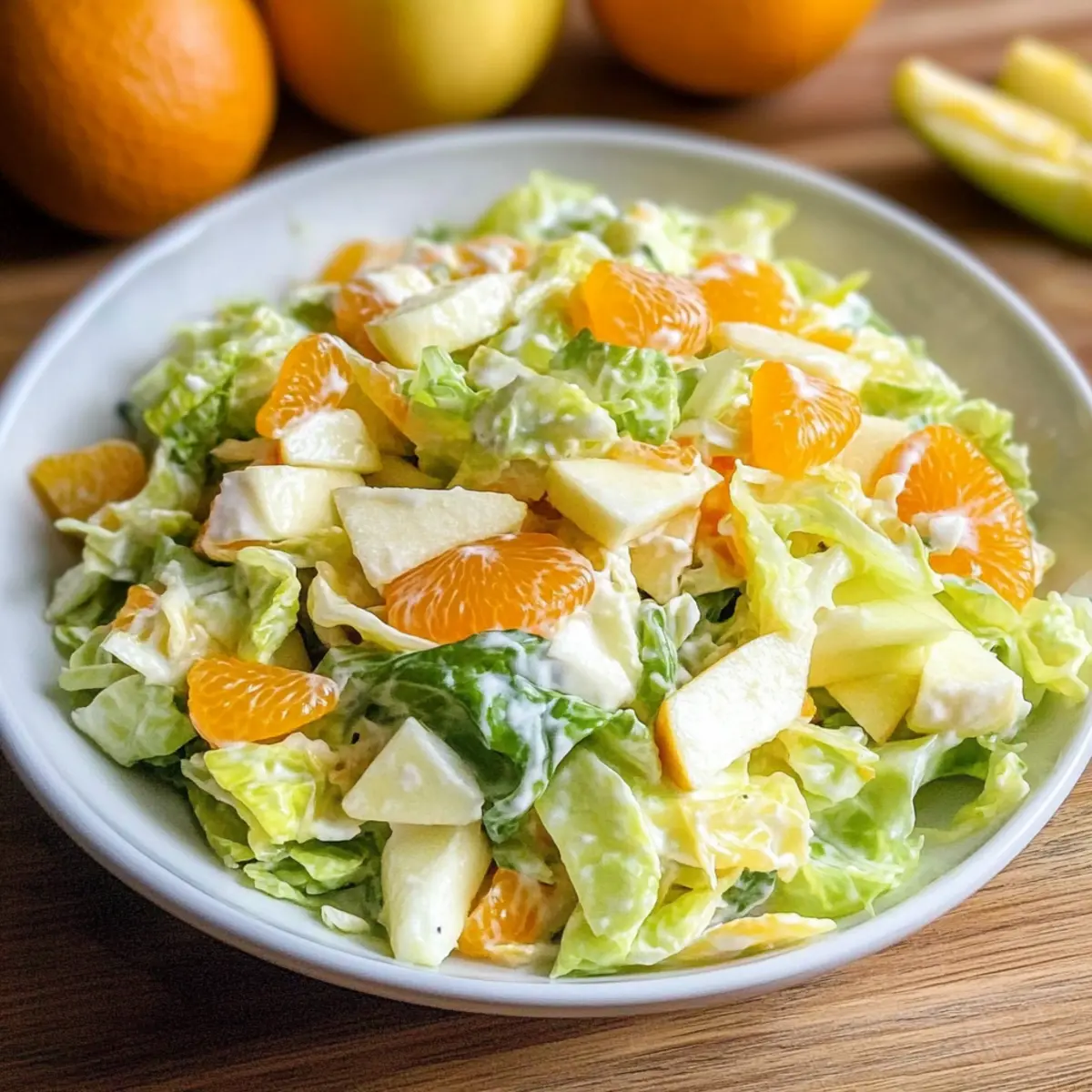 Ein köstlicher Chinakohlsalat mit Mandarinen und Apfel, einfach zuzubereiten und perfekt für einen gesunden Lebensstil.