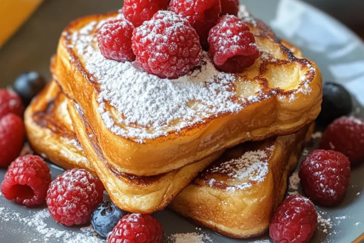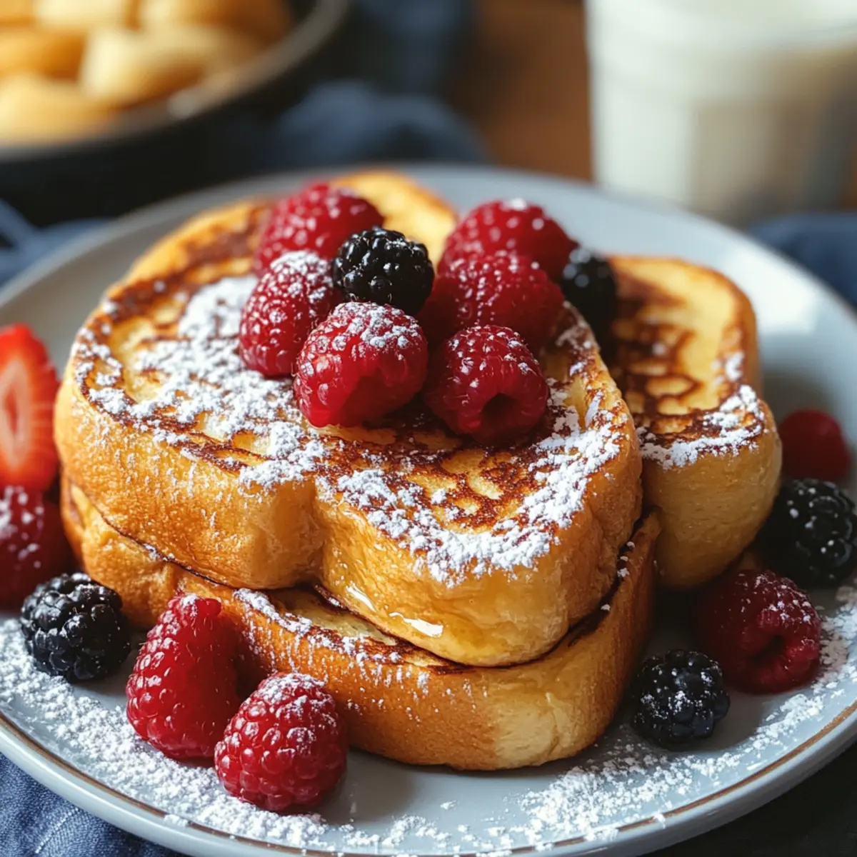 5. Serviere den Französischen Toast sofort, garniert mit Puderzucker oder frischen Früchten.
