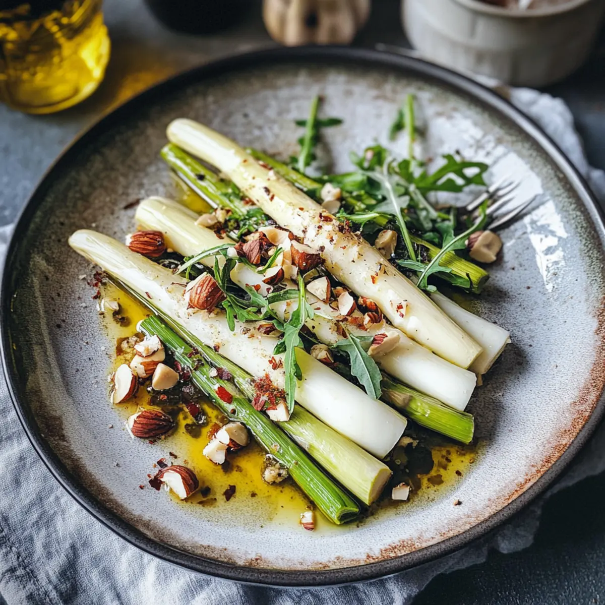 Es ist wieder diese wunderbare Jahreszeit, in der die ersten zarten Stängel des weißen Spargels auf dem Markt erscheinen. Wenn ich an Gerichte mit Spargel denke, kommt mir sofort die Vorstellung von einem leichten, frischen Essen, das die Freiheit und den Geschmack des Frühlings verkörpert. In diesem Rezept für weißen Spargel mit Rucola Haselnuss Vinaigrette vereinen sich die zarte Textur des Spargels und die pfeffrigen Noten des Rucolas, während die knusprigen Haselnüsse dem Gericht den letzten Schliff verleihen. Die Zubereitung ist so schnell und einfach, dass du dieses köstliche Gericht sowohl als leichte Mahlzeit als auch als eleganten Appetizer genießen kannst. Bereit, deine Küche in eine Frühlingsoase zu verwandeln? Lass uns gemeinsam die Zutaten erkunden!