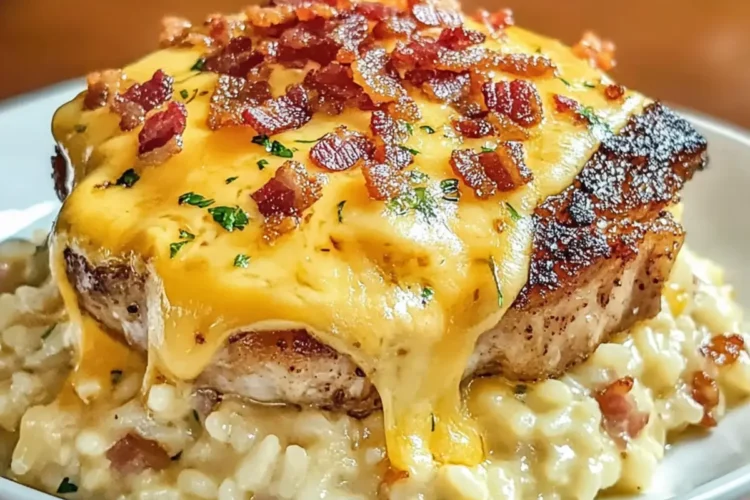 Braised Pork Chops mit Käse-Bacon-Reis