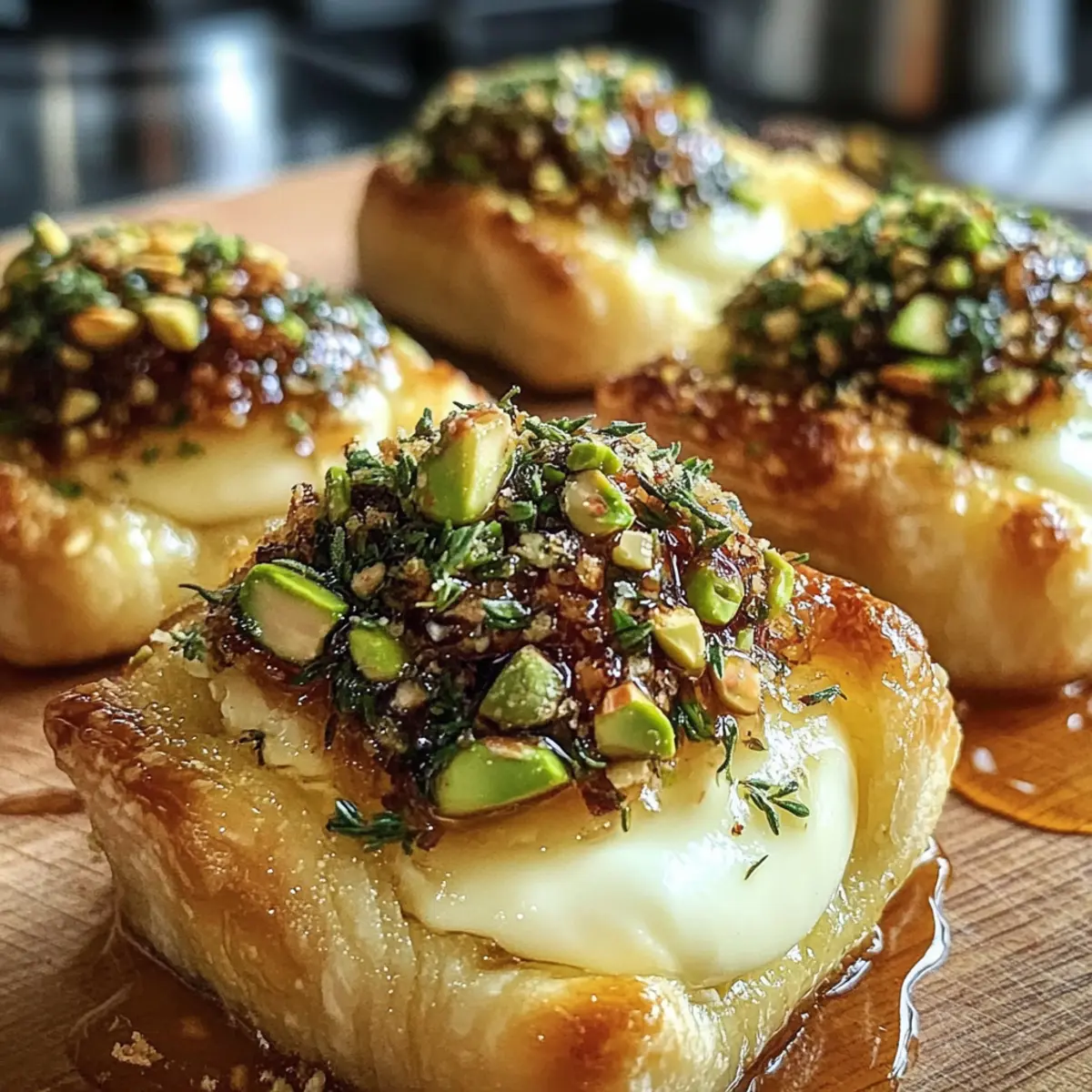 Beim Zubereiten dieser herzhaften Pistazienkrusten-Brie-Häppchen spüre ich oft, wie der Duft von frisch gebackenem Blätterteig und geschmolzenem Brie durch meine Küche zieht. Diese kleinen Meisterwerke sind mehr als nur Snacks – sie sind der perfekte Höhepunkt für jede Feier oder einfach ein schickes Vergnügen für zwischendurch. In weniger als dreißig Minuten zubereitet, bieten sie nicht nur ein wenig Gourmet-Geschmack, sondern sind auch anpassbar – denkt an glutenfreie Optionen oder vegane Varianten! Ihre knusprige Pistazienkruste harmoniert wunderbar mit der cremigen Füllung, und ein Hauch von Honig und frischem Thymian rundet das Ganze ab. Neugierig, wie man diese köstlichen Häppchen zubereitet? Lasst uns gemeinsam in die Welt dieser verführerischen Köstlichkeiten eintauchen!