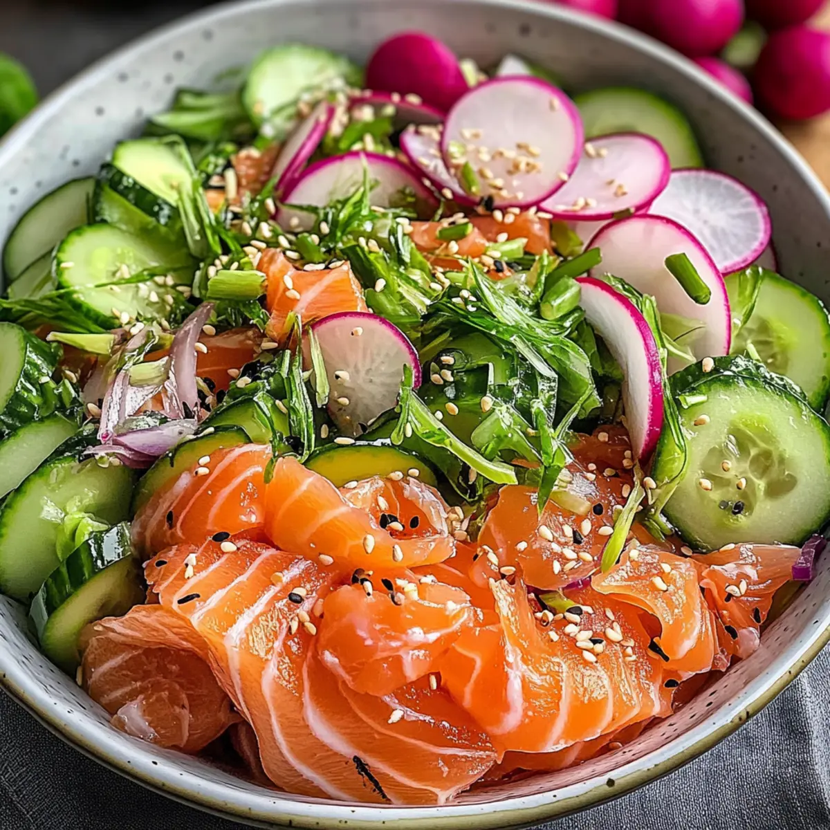 Hast du schon einmal von einem Sushi-Salat geträumt, der all die frischen Aromen dieser japanischen Köstlichkeit einfängt, aber leicht und ohne Reis daherkommt? Mein erfrischender Karfreitags-Fischsalat mit Stremellachs vereint knackige Gurken und würzige Radieschen zu einer köstlichen Sommermahlzeit, die sowohl schnell zuzubereiten als auch nährstoffreich ist. In nur 10 Minuten bist du bereit, diese geschmackvolle Mischung zu genießen, die sich perfekt für leichte Mittagessen oder als schmackhafte Vorspeise eignet. Lass dich inspirieren und entdecke, wie dieser salzige und cremige Genuss auch Variationen ermöglicht – vielleicht sogar mit Avocado oder gebratenem Tofu. Bist du bereit, deine Geschmacksnerven zu verwöhnen?
