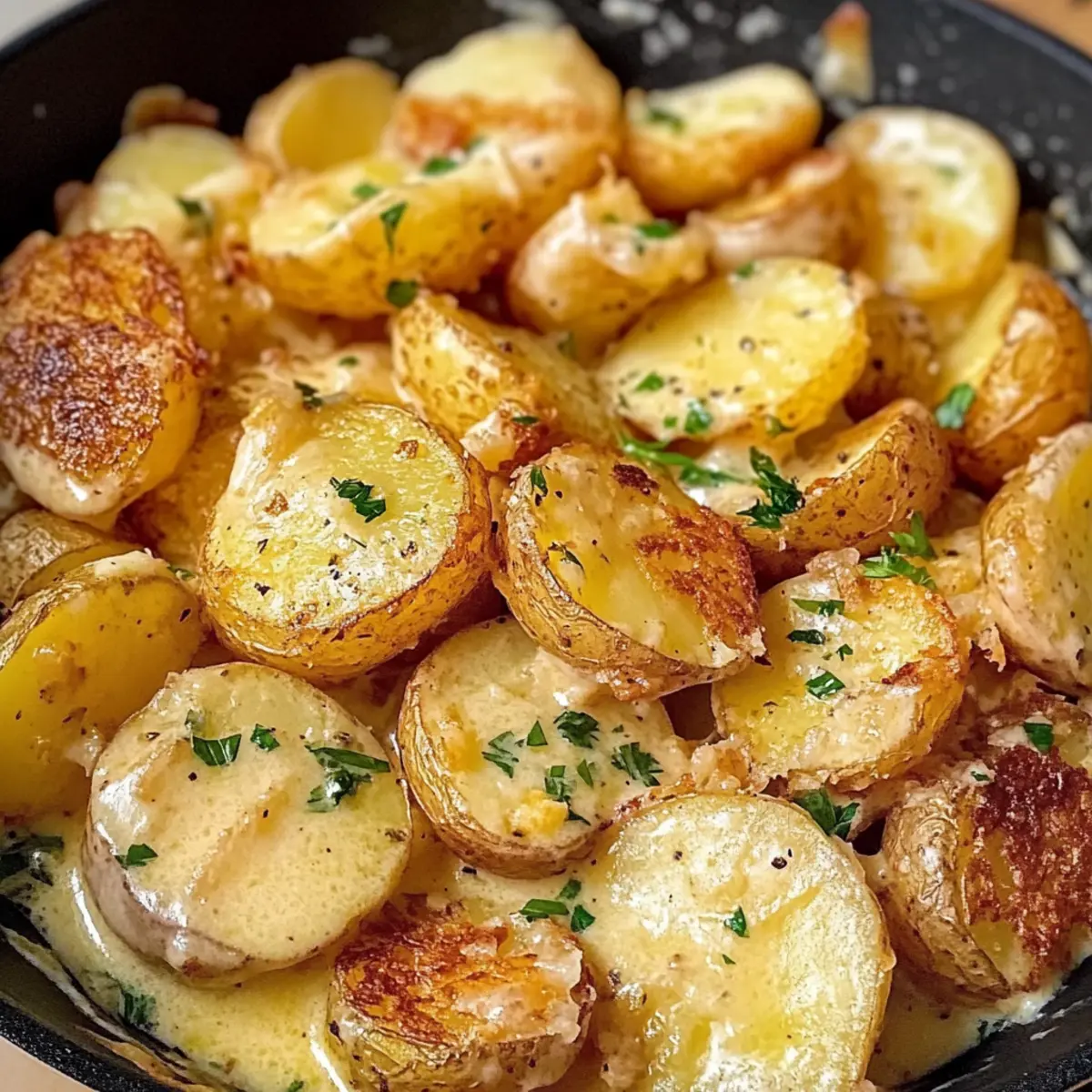 Genieße eine schnelle und köstliche Beilage mit Kartoffeln in Knoblauch-Sahnesauce – perfekt für geschäftige Wochentage.