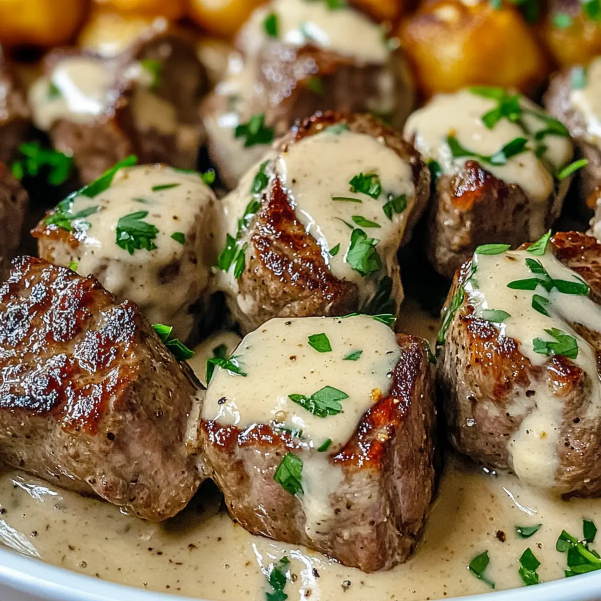 Vorbereiten: Bei Meal Prep die Steakbissen und die Sauce separat lagern, um die beste Textur und den Geschmack zu gewährleisten.
