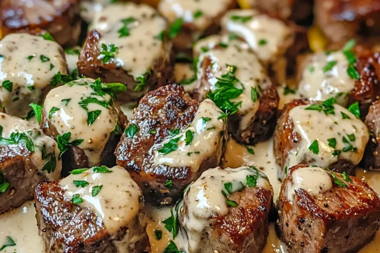 Knoblauchbutter Steakbissen mit Parmesan Sauce