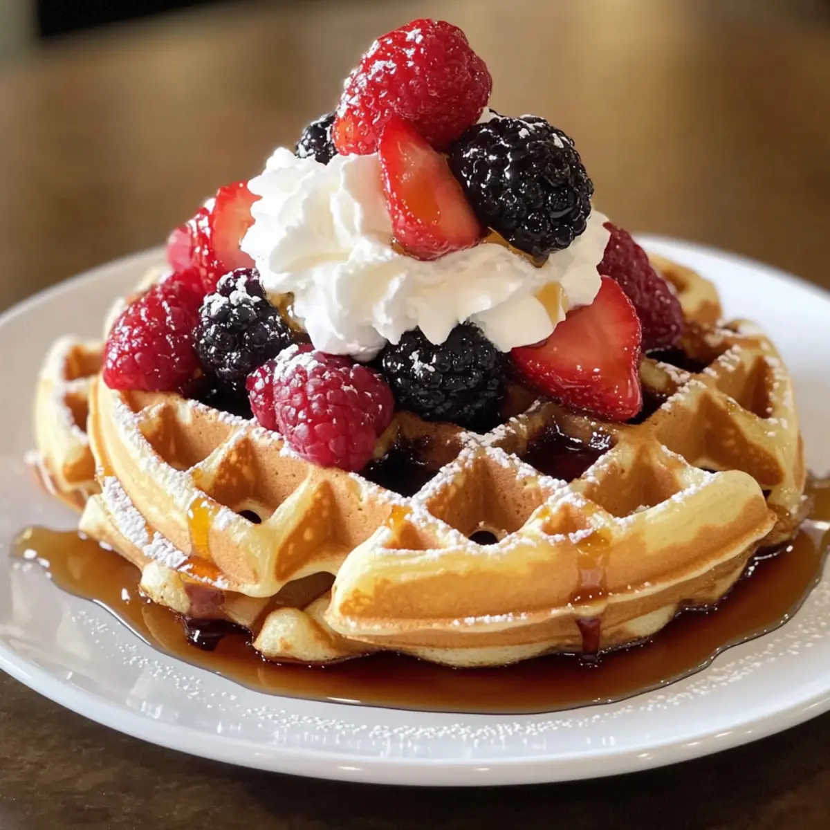 • Honig oder Ahornsirup: Ein sanfter Schuss Honig oder Sirup bietet eine köstliche Süße, die die Waffeln noch unwiderstehlicher macht.