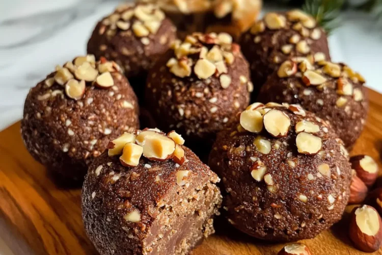 - Wälze die geformten Bällchen in den gehackten Haselnüssen, bis sie rundum bedeckt sind. Stelle sie erneut für etwa 1 Stunde in den Kühlschrank.