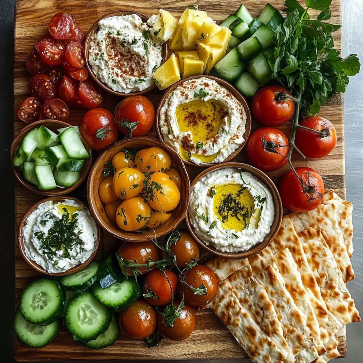 Variationen ausprobieren: Scheuen Sie sich nicht, mit verschiedenen Dips und Brotsorten zu experimentieren! So bleibt Ihr Mittelmeer-Brunch einzigartig und aufregend.