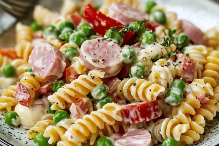 Erfrischender Nudelsalat mit Schinken und Mayo