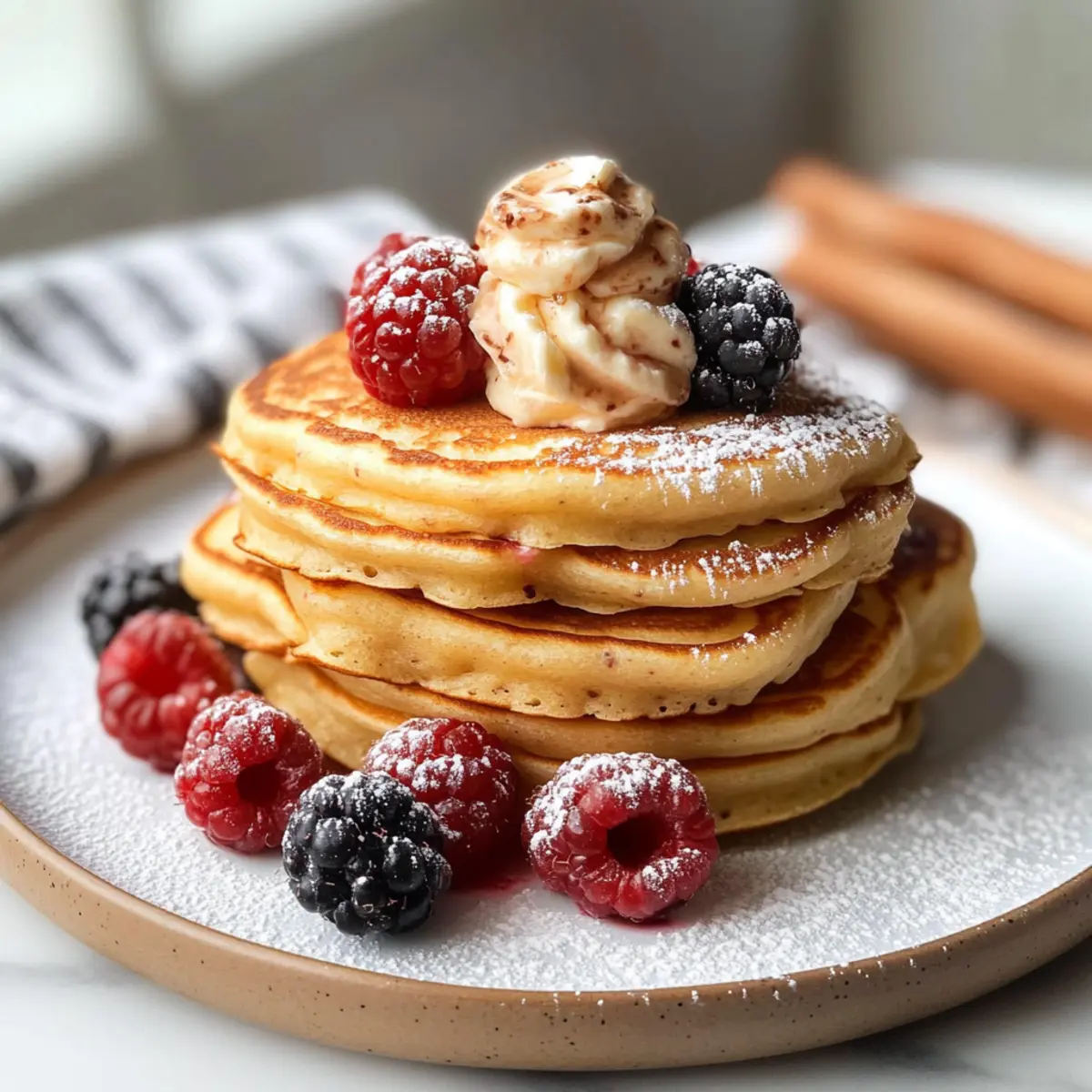Joghurt: Ein Klecks griechischer Joghurt bietet eine cremige, erfrischende Ergänzung und eine proteinreiche Komponente. Er verwandelt die Pfannkuchen in eine sättigende Mahlzeit, die auch für ein leichtes Mittagessen geeignet ist.