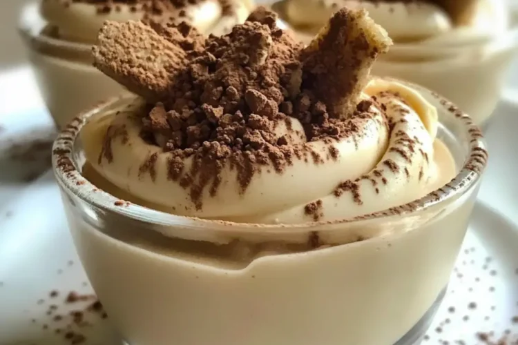 - Bestäube die Creme mit Kakaopulver und füge optional Amarettini als Topping hinzu. Stelle die Schalen für mindestens 1 Stunde in den Kühlschrank.