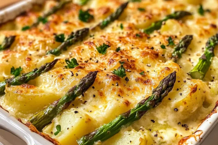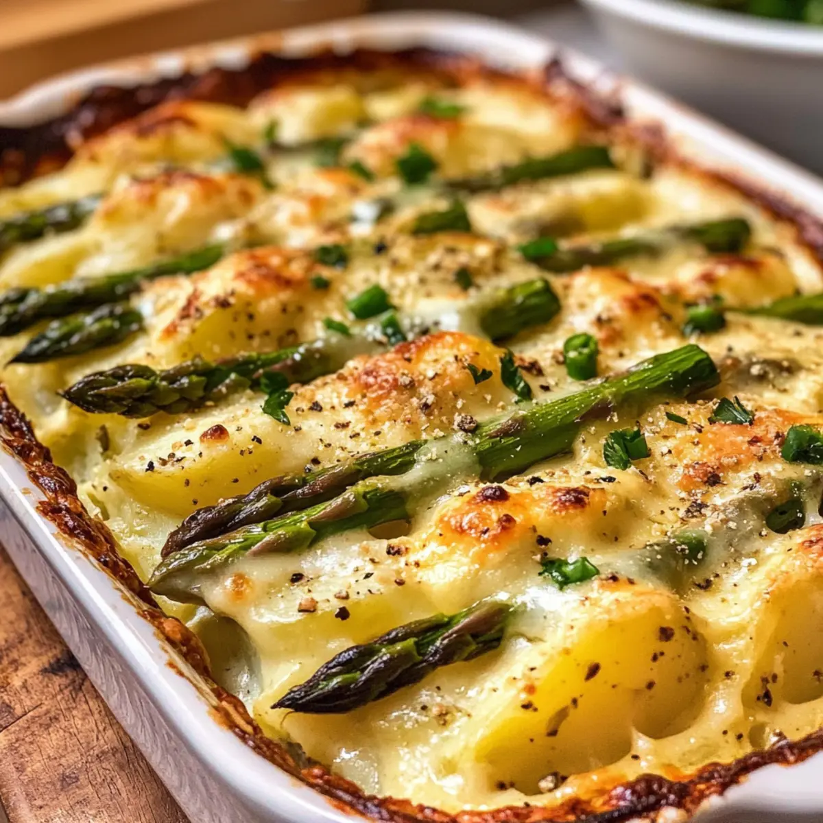 Spargelgratin ist ein cremiger Auflauf, der frischen Spargel und Kartoffeln kombiniert und einfach zuzubereiten ist.