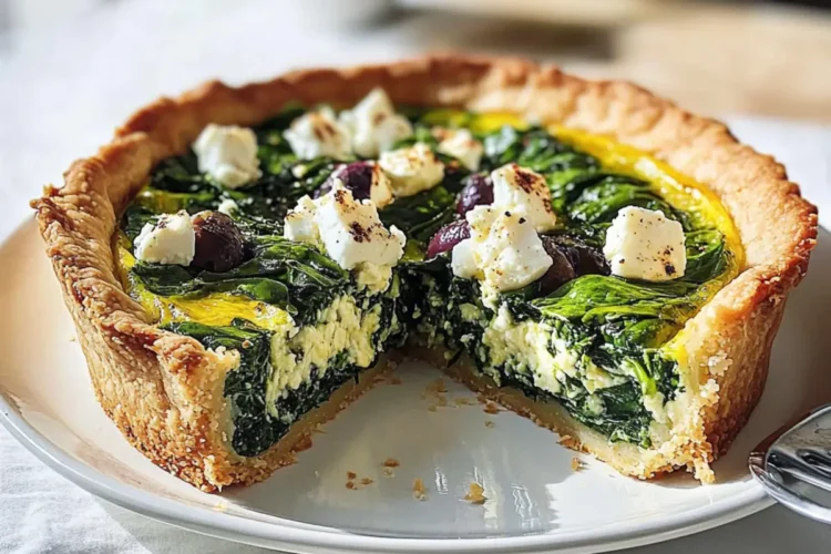 Genießen Sie eine köstliche Spinatquiche mit Feta auf einem knusprigen Dinkelboden – perfekt für ein herzhaftes Frühstück oder Brunch!