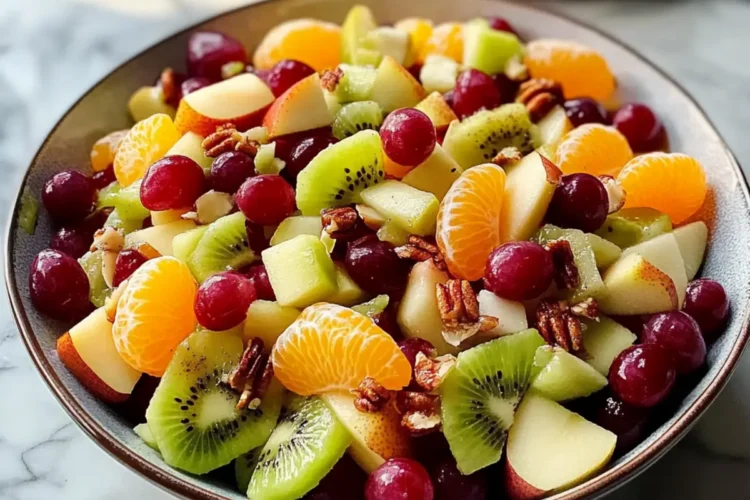 Gesunden Genuss: Mit einer Kombination aus Obst und Nüssen ist dieser Salat nicht nur lecker, sondern auch nahrhaft. Er ist die ideale leichte Option, um die Feiertage gesund zu genießen.