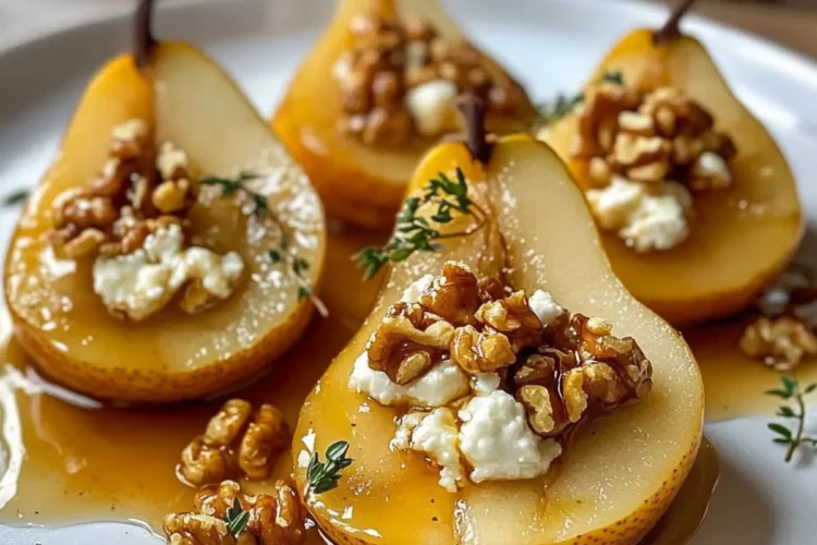 Verwöhnen Sie Ihre Gäste mit diesem zauberhaften Rezept für warme Birnen mit Ziegenkäse und lassen Sie sie in eine Welt voller Aromen eintauchen!